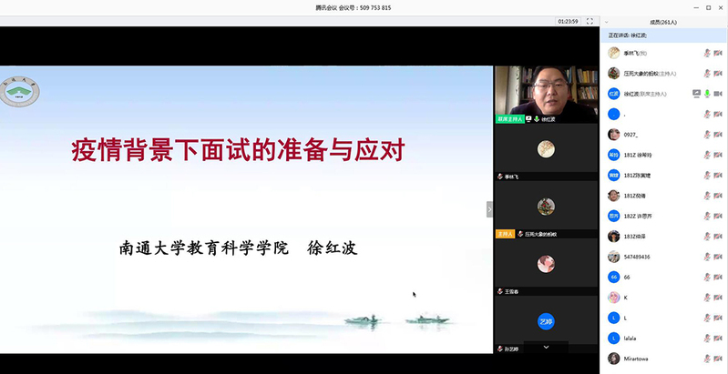 3月25日下午,教育科学学院召开线上就业辅导专题视频会议,学院党委副书记兼副院长徐红波主持会议并作《疫情背景下面试的准备与应对》专题讲座。