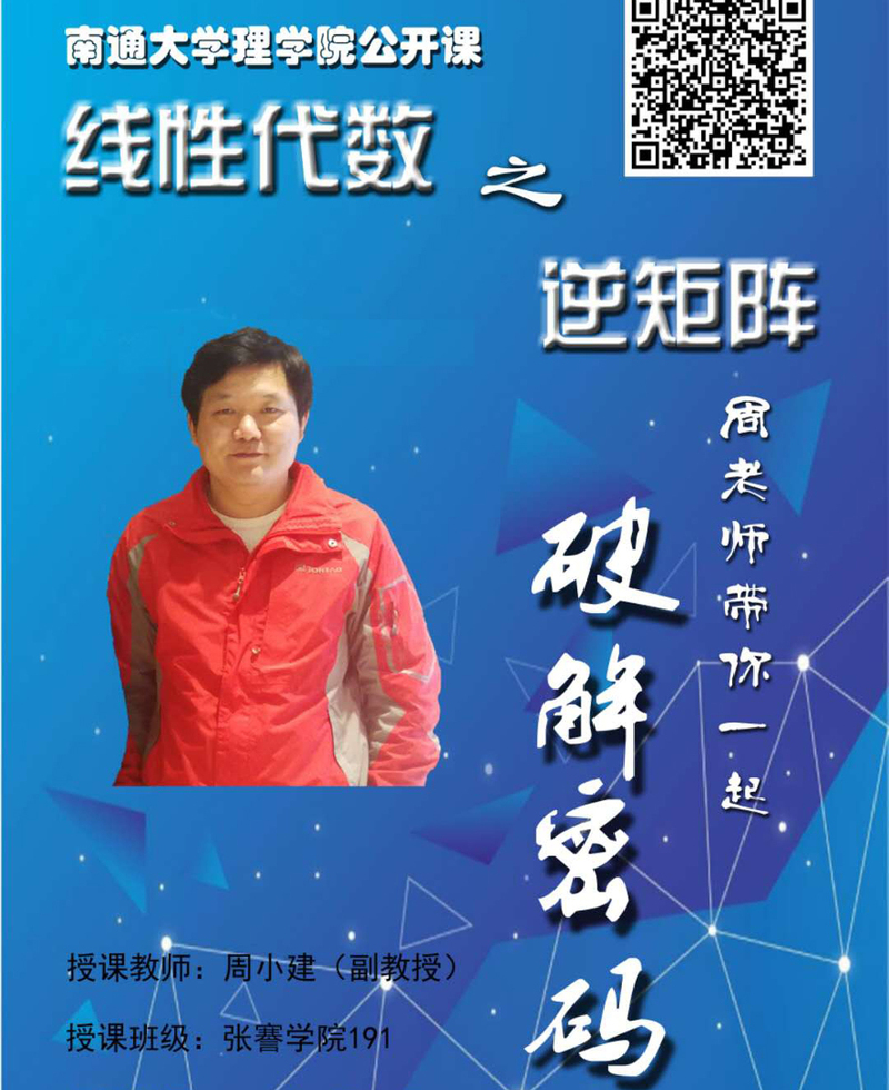 周小建首先以独特而新颖的“破解谍战密码”为引线,介绍了军事上Hill密码的加密、解密原理。接着从密钥矩阵和解密矩阵的设计角度,引出了本次公开课介绍的主要内容----逆矩阵。在介绍完相关知识点后,借助软件演示,周老师让学生亲身体验了整个加密解密的全过程,并指导学生进行了实际操作,让学生深刻体会到“学以致用”的乐趣。整个授课过程深入浅出,通过巧妙而有效的师生互动,引导学生深入探索解决问题背后的数学原理。