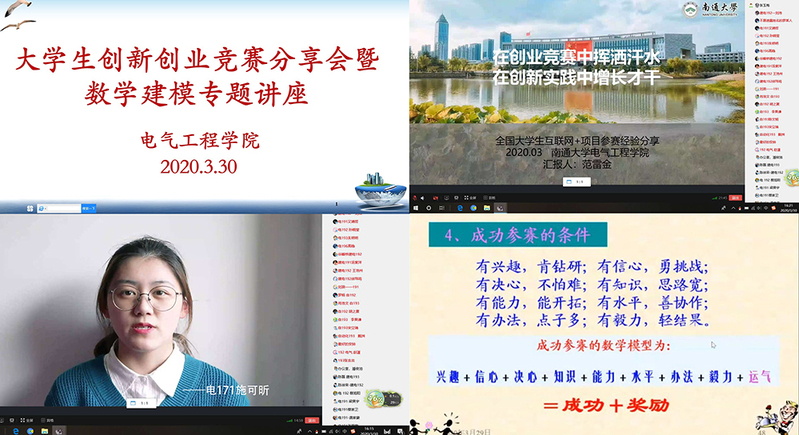 3月30日下午,电气工程学院通过QQ平台举办大学生创新创业竞赛分享会暨数学建模专题讲座。