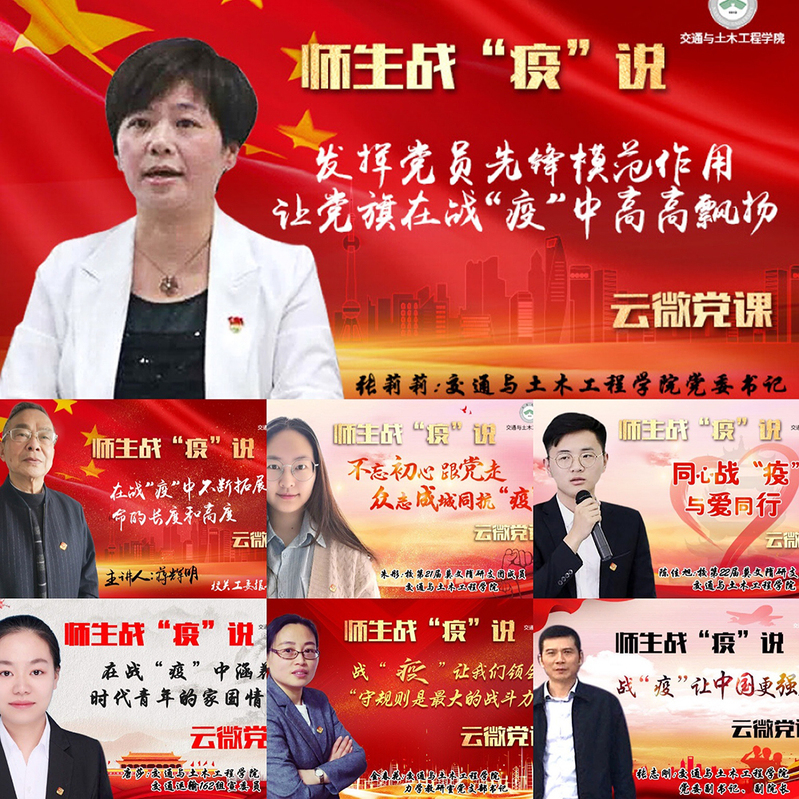3月10日-31日,交通与土木工程学院开展“不忘初心勇担当 牢记使命展作为”主题活动和新时代爱国主义教育系列活动,通过实现“云”党课与五育并举,在“疫情”大考下,对学院学子进行爱国主义教育、生命教育、社会责任感教育、规则教育、爱与感恩教育。