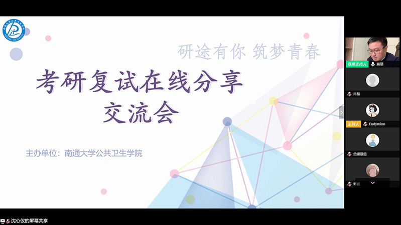 3月30日下午,公共卫生学院通过腾讯会议网络平台举办“研途有你,筑梦青春”考研复试在线分享交流会。