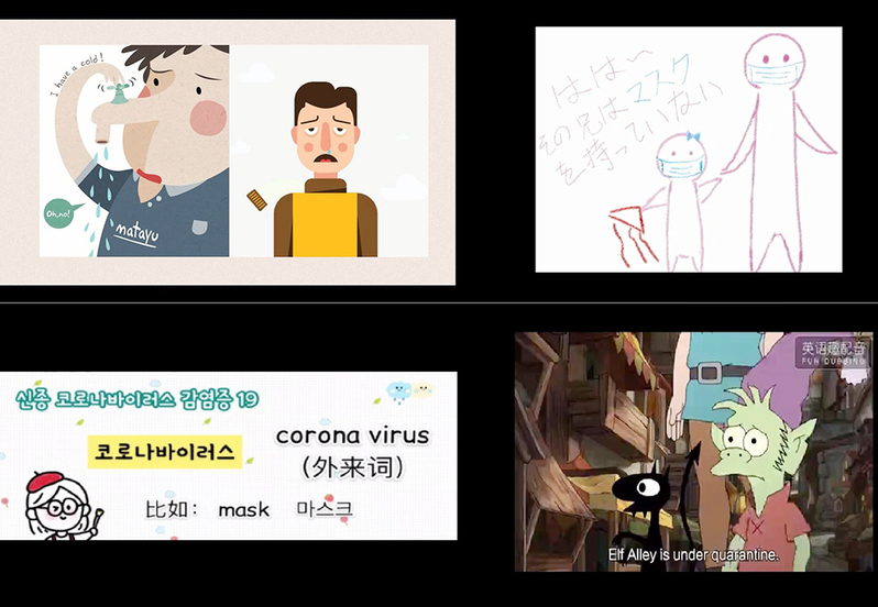 本次大赛采用线上模式,参赛选手可选定任意与疫情背景相关热词,如“新型冠状病毒”“易感人群”“隔离”“最美逆行者”,以形象化的方式进行演绎与视频创作,比赛涉及英、日、韩等多语种。参赛选手关注时下疫情,充分发挥想象力,运用所学专业知识,在理解词义的基础上对每个单词进行创意设计,创作出许多集创意性、趣味性、专业性、社会性于一体的优秀外文单词创意视频作品。他们或给单词添加适宜的娱乐、时事新闻等辅助记忆的内容,或通过幽默风趣的语言精炼阐述单词的词义、用法,或运用构图和谐、色彩饱满的图片形式,让单词的义和形都变得浅显易懂。