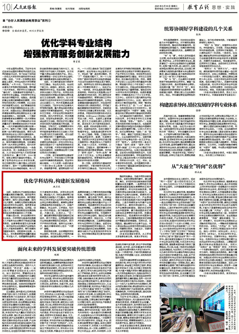 6月16日出版的《人民政协报》刊发全国政协委员、九三学社江苏省委会副主委、我校校长施卫东题为《优化学科结构,构建新发展格局》的署名文章。