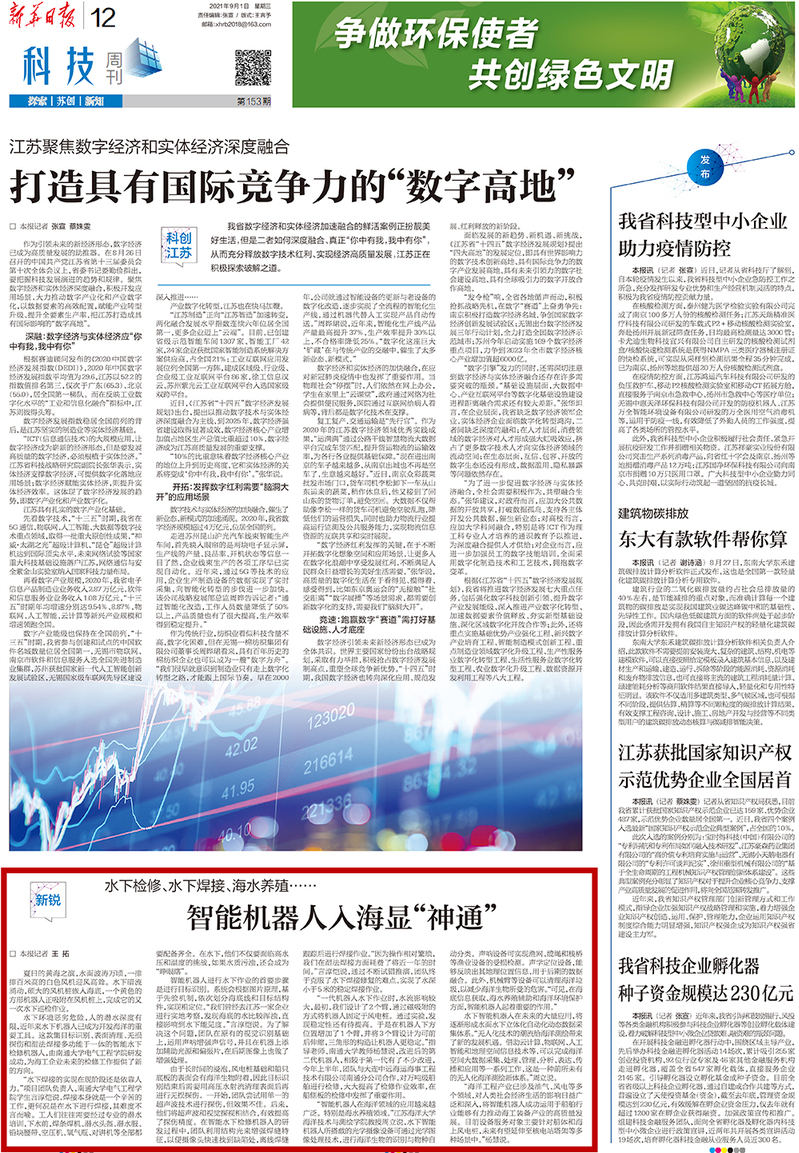 9月1日出版的《新华日报》以《智能机器人入海显“神通”》为题,报道我校电气工程学院师生团队的科技创新成果。
