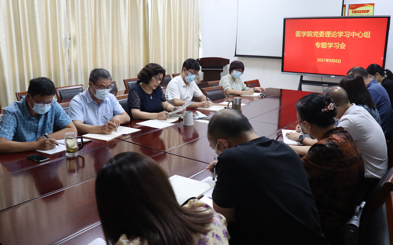 9月6日上午,医学院召开党委理论学习中心组会议,专题学习贯彻中共南通大学第三届委员会第四次全体(扩大)会议暨新学期工作会议精神,传达学习习近平总书记在中央党校(国家行政学院)中青年干部培训班上的重要讲话精神。会议由医学院党委书记史亚琴主持,学院党委理论学习中心组成员参会。