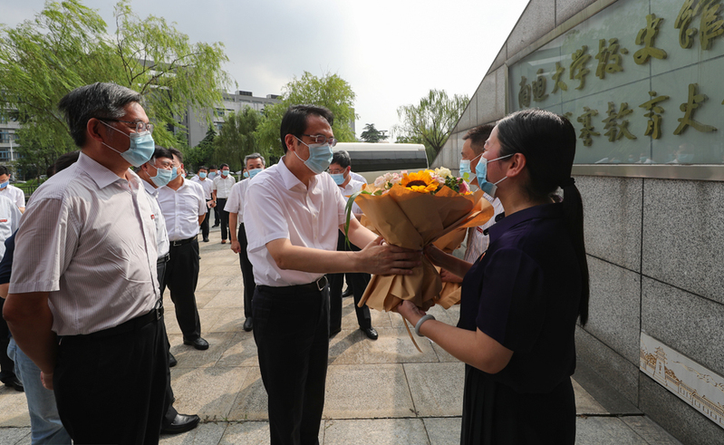 9月9日上午,在第37个教师节来临之际,南通市委书记王晖一行莅临我校,看望慰问教师代表,并参观张謇教育史馆。校党委书记浦玉忠,校长施卫东,校党委副书记、副校长高建林,校党委常委、组织部部长王卫东,校党委常委、宣传部部长吉明明陪同慰问。