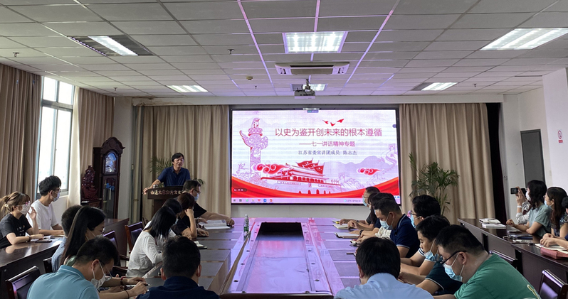 党史学习教育江苏省委宣讲团成员、南通大学马克思主义学院教授陈志杰应邀为学院全体师生党员作题为《以史为鉴 开创未来——“七一”讲话精神专题》的宣讲报告。他围绕习近平总书记在建党100周年上的讲话内容,结合若干影响深远的党史案例,点面结合地讲述了报告中的四个伟大成就、四个庄严宣告、伟大建党精神、九个必须等内容。报告脉络清晰、内容丰富、视野宏大,让大家对“七一”讲话精神有了更加深刻的理解与认识,为大家更好地开展党史学习教育、理解党史提供生动又及时的指导。
