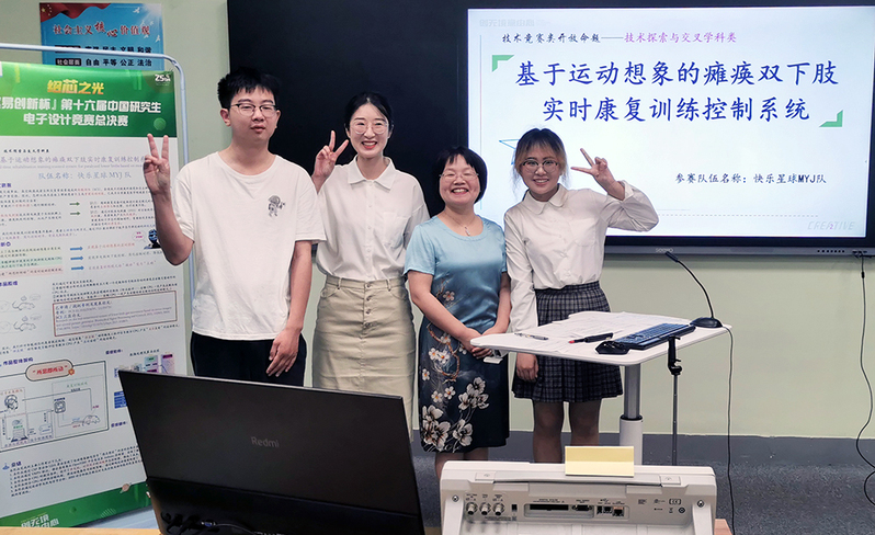 据我国残疾人联合会发布的数据显示,如今我国残疾人数已达到8000多万,占中国人口的 6.21%,其中肢体残疾人数的占比最高。生活自理能力的丧失不仅给患者自身带来了沉重的心理压力,对其家庭和社会造成莫大的负担。怎样从技术层面上帮助患者恢复或重建运动功能,已成为当前康复医学领域着力研究的重点之一。来自信息科学技术学院的研究生王雪梅、吴艳、楼雄杰通过反复研究实验,创造性地将功能性电刺激与运动想象相结合,研发出了基于运动想象的瘫痪双下肢实时康复训练控制系统,为患者康复带来了希望。不久前,该作品更是获得了第十六届中国研究生电子设计竞赛技术类一等奖。