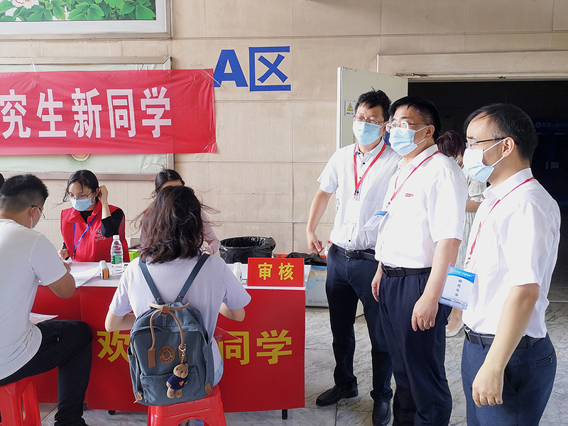 董正超与研究生新生进行了交谈,查看了入校身份核验点、核酸采样现场,肯定了研究生新生报到各项工作的安全有序和工作人员的辛勤付出。他强调,一定要从细节入手,为新生提供更多人性化关怀,让新生尽快融入到通大温暖的大家庭中来。