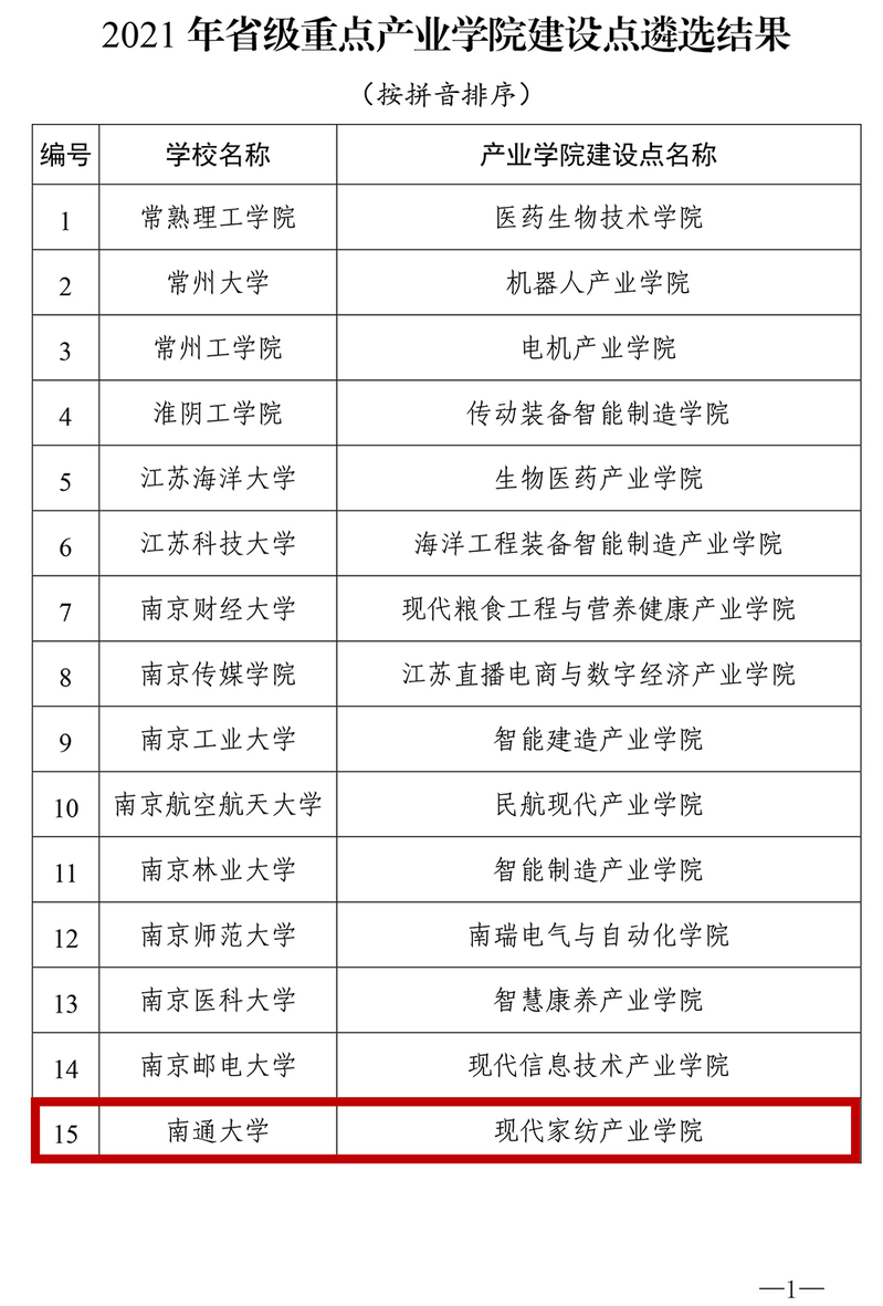 近日,江苏省教育厅发布了《关于公布2021年省级重点产业学院建设点遴选结果的通知》,我校申报的“现代家纺产业学院”成功获批。