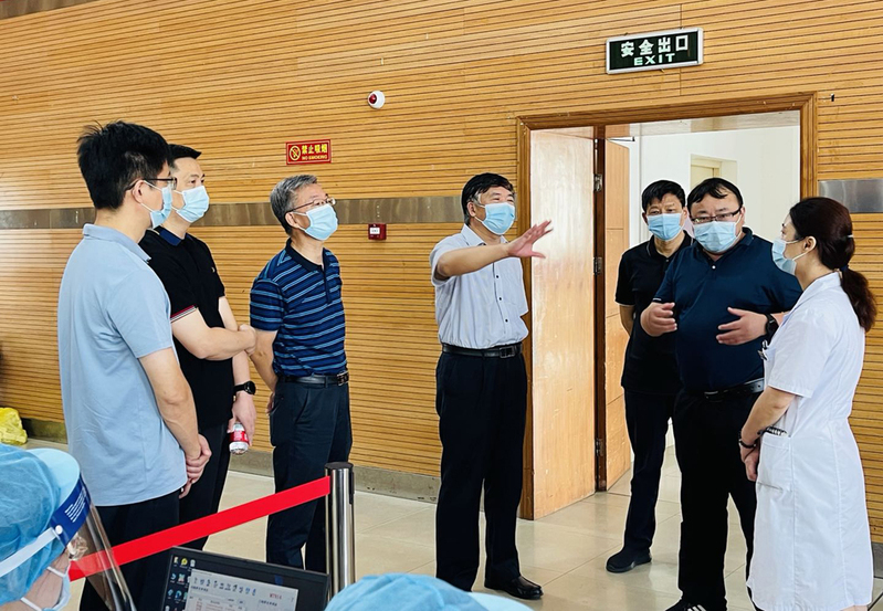 校领导一行现场指导首批返校学生核酸检测采样工作。