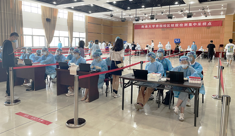 在南通市疾病预防控制中心的指导和支持下,我校于9月21日—23日分别在啬园校区、钟秀校区、启秀校区的集中采样点,分批次对18000余名返校学生开展核酸检测采样工作。
