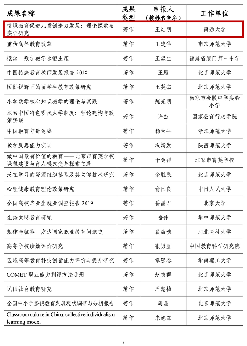 日前,第六届全国教育科学研究优秀成果奖评选结果公布,我校教育科学学院教授王灿明的专著《情境教育促进儿童创造力发展:理论探索与实证研究》荣获二等奖。