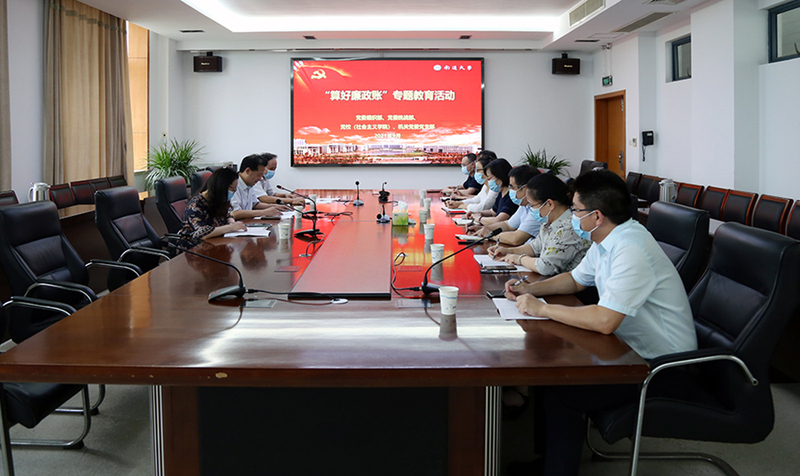 王卫东传达了《关于在全校开展2021年“算好廉政账”专题教育月活动的通知》《关于进一步加强机关作风建设的通知》精神。结合党史学习教育和理想信念教育,王卫东对支部全体党员提出三点要求:一是强化思想认识,不断提高政治站位。要充分认识“算好廉政账”的重要意义,心怀敬畏,知纪守廉。二是强化真抓严管,认真算好政治信念账。要慎终如始,一以贯之,做到严字当头,始终保持坚定的政治立场,脚踏实地、勇于担当,敬畏法纪、严于律己。三是强化示范带头,始终保持清廉本色。班子成员要以上率下,以身作则,当好廉政表率。全体党员干部要时刻绷紧廉洁自律弦,不越红线、不触底线,努力打造清正廉洁的模范部门。
