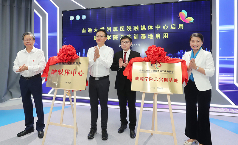 10月10日,附属医院举行融媒体中心暨中国医师协会健康传播工作委员会蝴蝶学院总实训基地启用仪式、第三届健康中国创新传播大会现场筹备会。校党委副书记、副校长、附属医院党委书记高建林,中国医师协会健康传播工作委员会常务副主委、海南博鳌乐城国际医疗旅游先行区管理局副局长刘哲峰,江苏省卫生健康委员会宣传处副处长吴苏凌出席会议并为通大附院融媒体中心和中国医师协会健康传播工作委员会蝴蝶学院总实训基地揭牌。