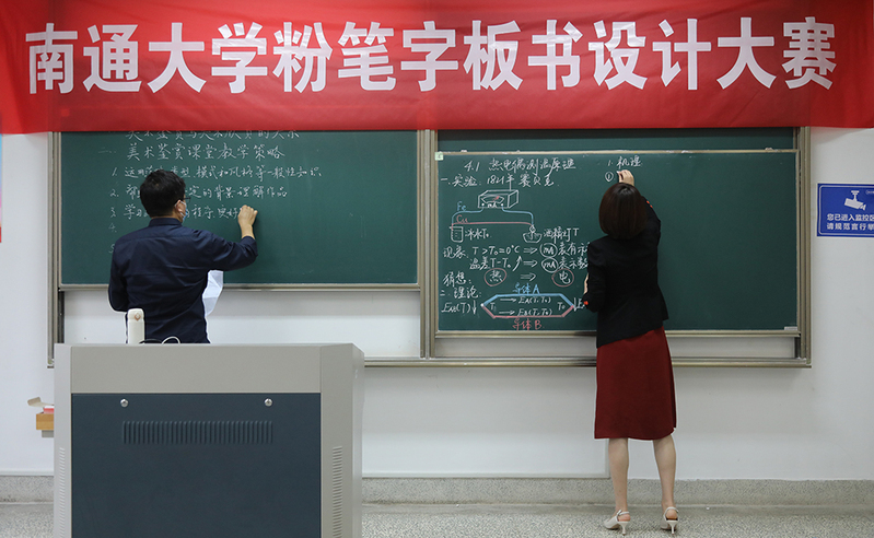 10月14日下午,我校举办首届粉笔字板书设计大赛。比赛共评出一等奖2人,二等奖4人,三等奖9人。理学院袁莉、艺术学院邬小伟获得一等奖。校党委书记浦玉忠现场观摩了比赛。