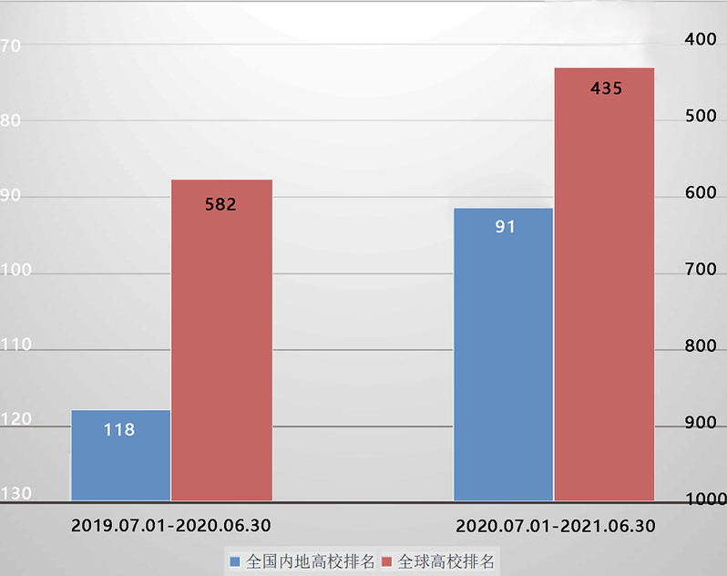 近日,自然指数网站更新了榜单(统计时间段为2020年7月1日至2021年6月30日)。在该统计时间段内,我校Count值为61,Share值为24.79,位列全国内地高校第91名,较去年同期前进27位;位列全球高校第435名,较去年同期前进147位。