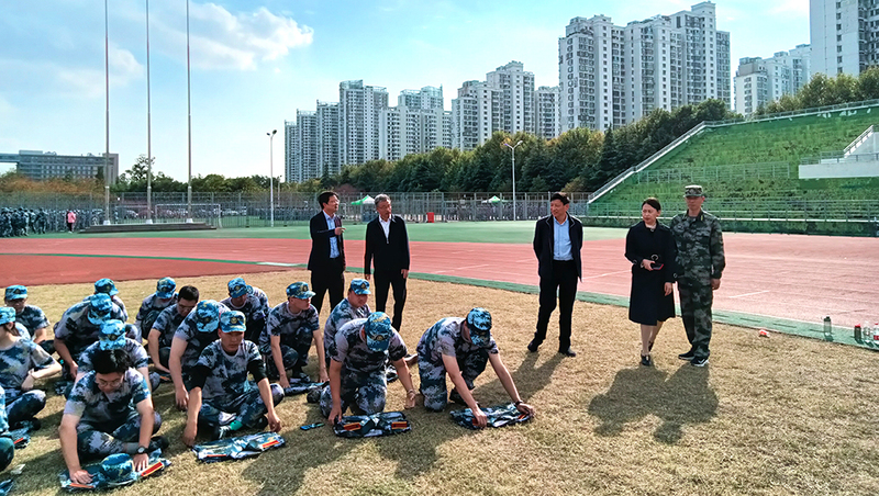 10月25日下午,校党委常委、副校长樊小东,校党委常委、副校长侯文华到军训现场看望、慰问全体教官、现场带训的辅导员和参训学生,检查新生消防培训工作。