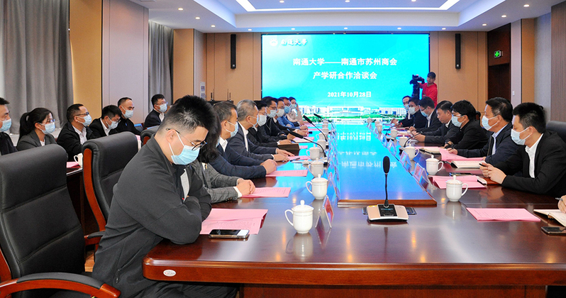 10月28日下午,南通市工商联主席陆建新率南通市苏州商会17家会员企业来校洽谈产学研合作,就科研成果与合作需求等内容进行深入交流。校长施卫东出席洽谈会。