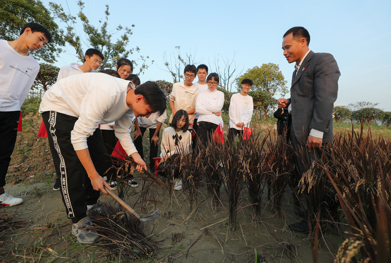 师生稻花香里话百年。