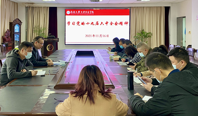 11月16日上午,公共卫生学院党委理论学习中心组举行集中学习(扩大)会议,专题学习贯彻党的十九届六中全会精神。