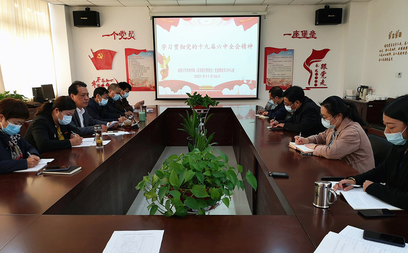 11月16日,杏林学院(启东校区管委会)党委召开理论学习中心组扩大会议,专题学习十九届六中全会精神。