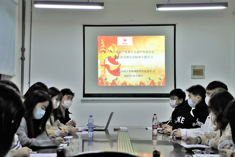 11月15日晚,地理科学学院举行新思想公开课,专题学习党的十九届六中全会精神。