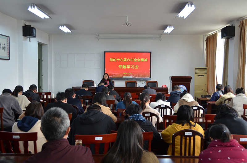 学院党委书记朱城主持学习会,传达学习了《中国共产党第十九届中央委员会第六次全体会议公报》,指出党的十九届六中全会是在我们党百年华诞的重要时刻,在“两个一百年”奋斗目标历史交汇关键节点上召开的一次重要会议,对于推动全党进一步统一思想、统一意志、统一行动,团结带领全国各族人民以史为鉴、开创未来,在新时代更好地坚持和发展中国特色社会主义具有重大而深远的影响。同时,党中央在建党百年之际召开十九届六中全会,既体现了我们党重视和善于运用历史规律的高度政治自觉,也体现了我们党牢记初心使命、继往开来的自信和担当。