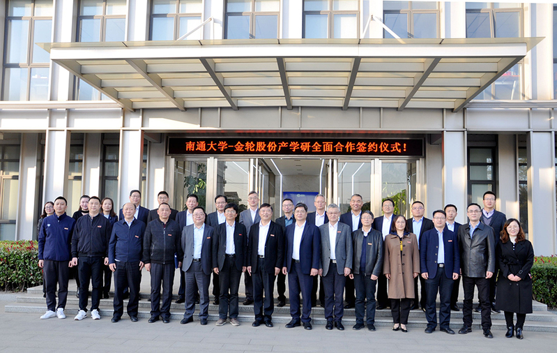 11月18日下午,我校与金轮蓝海股份有限公司举行产学研全面合作洽谈会,校企双方签署了“产学研全面合作协议”和“捐赠协议”。校长施卫东与金轮蓝海股份有限公司董事长兼总裁汤华军共同为“南通大学—金轮蓝海股份有限公司产学研基地”揭牌。