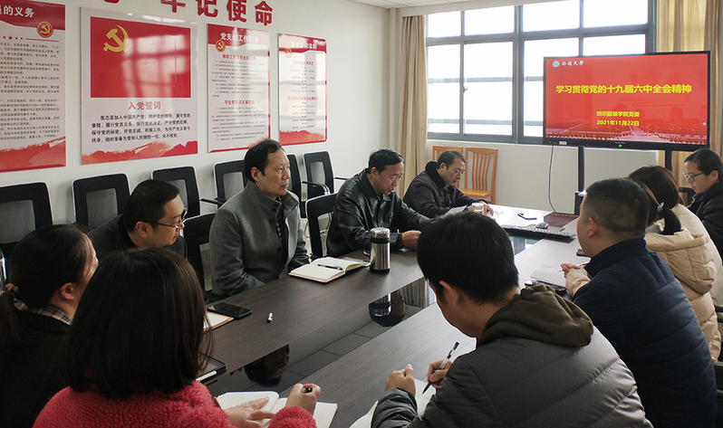 11月22日上午,教育科学学院召开专题学习会,学习贯彻党的十九届六中全会精神。