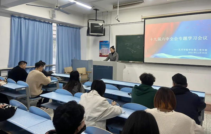 11月19日下午,艺术学院学生第三党支部召开专题学习会,传达学习党的十九届六中全会精神,并就学习贯彻全会精神提出具体要求。