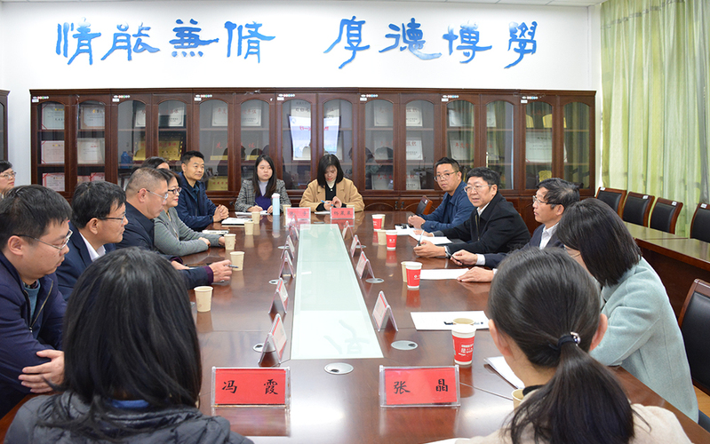 人文社科处相关人员陪同调研,教育科学学院领导班子、教师代表参加会议。