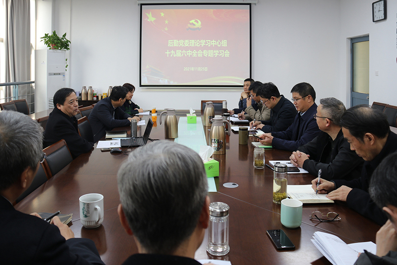 11月25日下午,后勤党委理论学习中心组召开专题学习会,传达、学习党的十九届六中全会精神。