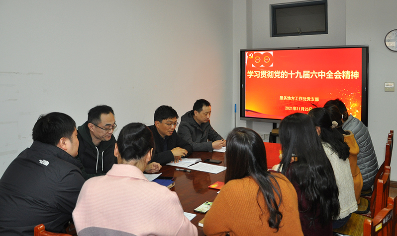 11月25日,服务地方工作处党支部召开专题学习会,学习贯彻党的十九届六中全会精神。