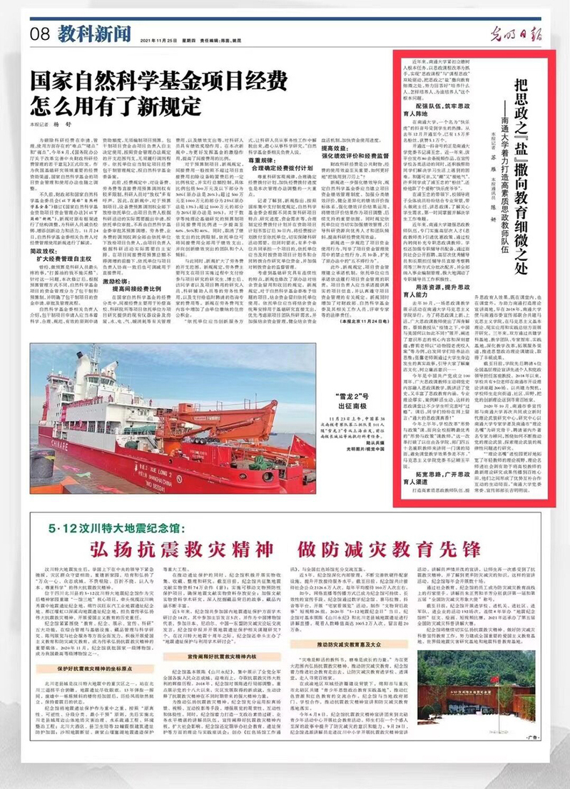 11月25日出版的《光明日报》以《把思政之“盐”撒向教育细微之处》为题,报道我校着力打造高素质思政教师队伍。
