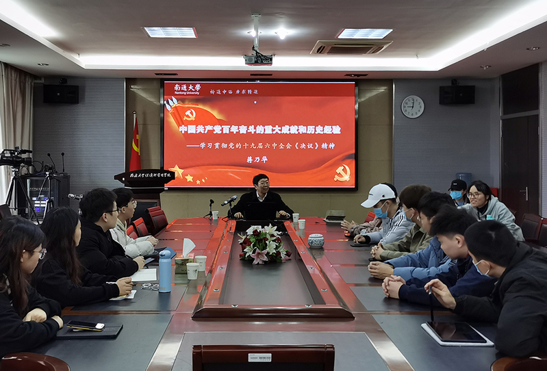 11月29日上午,校党委常委、副校长蒋乃华结合党的十九届六中全会精神,以《中国共产党的百年奋斗重大成就和历史经验》为题,为经济与管理学院工商管理2018级本科生上了一堂生动的形势与政策课。