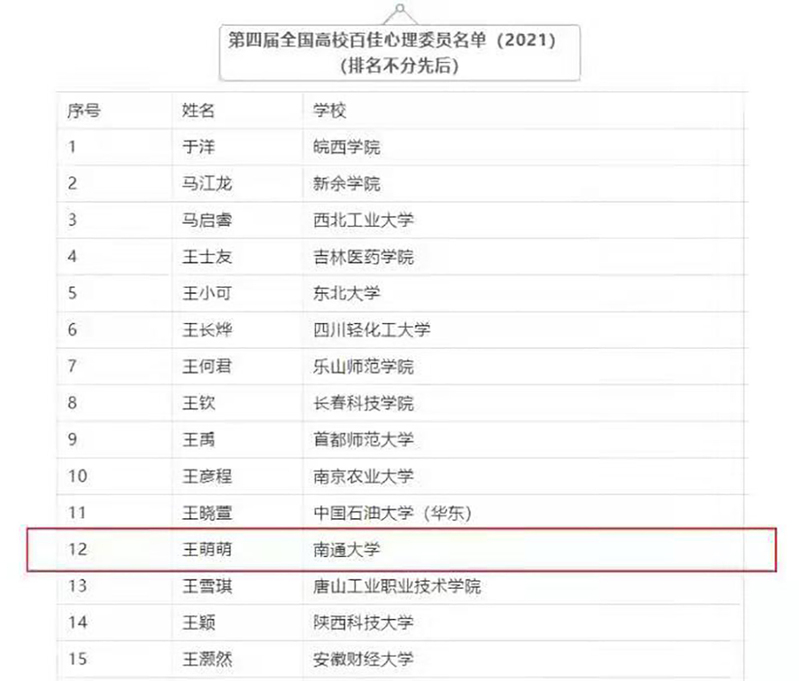 近日,第十六届全国高校心理委员工作研讨会在桂林理工大学召开。我校医学院辅导员王燕妮撰写的论文《论心理委员的有效管理与培养》荣获优秀论文二等奖,机械工程学院杜楠楠、信息科学技术学院张恒、经济与管理学院王纪妹、生命科学学院郑月红等四位老师的作品获三等奖。外国语学院英语师范191班王萌萌同学获“全国高校百佳心理委员”称号,公共卫生学院预防191班沈心仪和马克思主义学院政教师范191班宋佳怡两位同学获“全国高校百佳心理委员提名奖”。