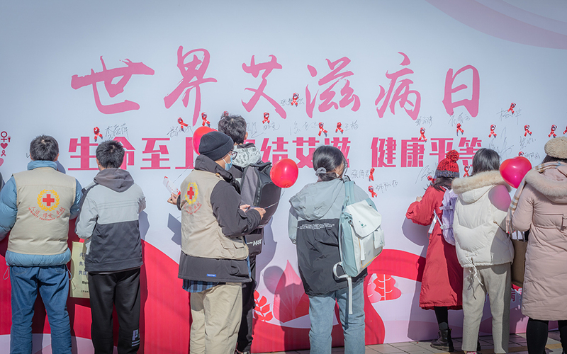 12月1日是第34个“世界艾滋病日”,医疗服务中心联合校红十字会在啬园校区开展以“生命至上、终结艾滋、健康平等”为主题的防艾宣传教育活动。校党委常委、副校长樊小东,校党委常委、副校长侯文华,校党委常委、宣传部部长吉明明参加活动,并在主题宣传背景墙上签名、粘贴“红丝带”。