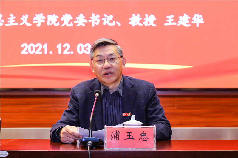 校党委书记浦玉忠主持报告会,并就我校进一步深入学习贯彻党的十九届六中全会精神提出要求。全体在通校领导出席会议。