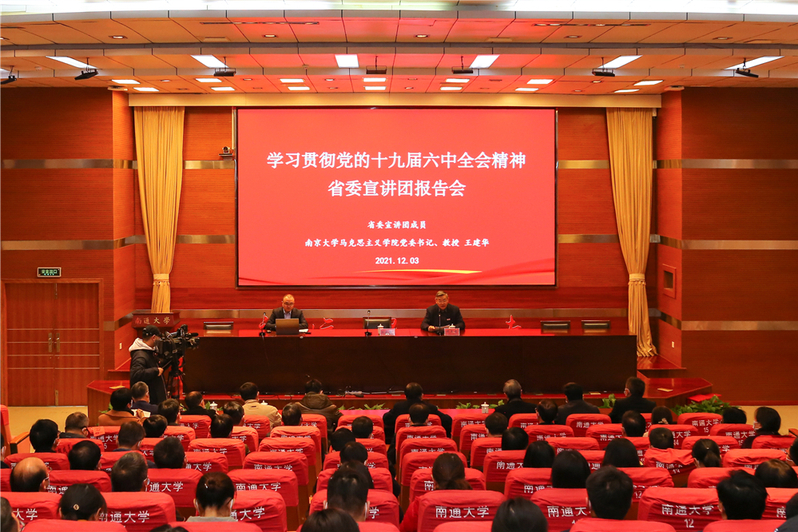 按照省委统一部署,12月3日,学习贯彻党的十九届六中全会精神省委宣讲团宣讲报告会在我校举行。省委宣讲团成员、南京大学马克思主义学院党委书记、教授王建华作宣讲报告。