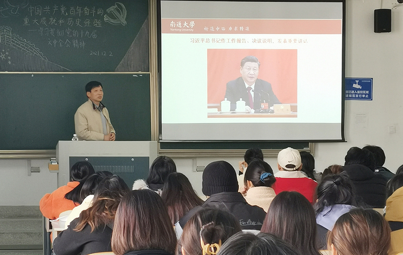 12月2日下午,校党委常委、副校长樊小东以《中国共产党的百年奋斗重大成就和历史经验——学习贯彻党的十九届六中全会精神》为题,为纺织服装学院服设181、182班呈现了一场生动的形势与政策课。