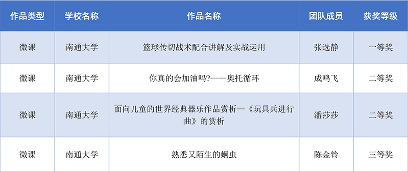 近日,2021年江苏省高校微课教学比赛评选结果揭晓,我校参赛作品获一等奖1项,二等奖2项,三等奖1项。