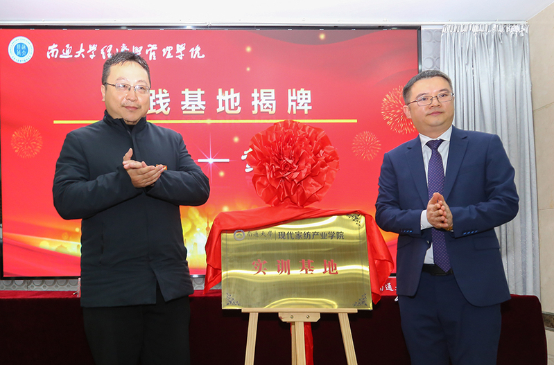 华亮和黄永峰共同为南通大学现代家纺产业学院实践基地揭牌。