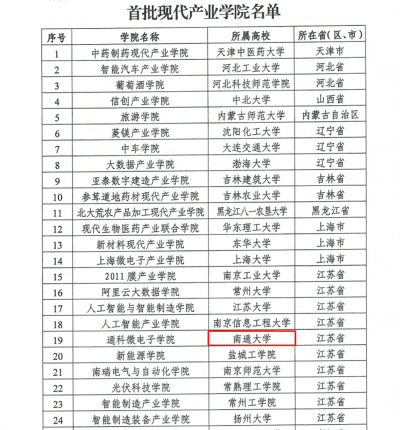 近日,教育部办公厅、工业和信息化部办公厅联合下发《关于公布首批现代产业学院名单的通知》,我校通科微电子学院入选首批国家级现代产业学院,成为全国首批入选教育部现代产业学院的50所高校之一。