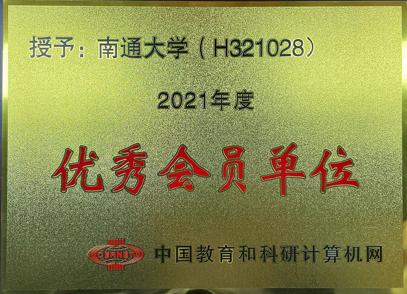 我校荣获2021年度中国教育和科研计算机网“优秀会员单位”称号。