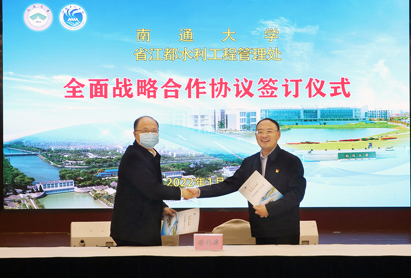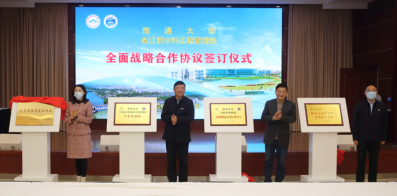 1月17日,我校与江苏省江都水利工程管理处举行产学研全面合作洽谈会。校长施卫东,省水利厅副厅长张劲松,九三学社江苏省委秘书长、二级巡视员朱凯丽,省江都水利工程管理处党委书记、主任夏方坤共同为“南通大学——省江都水利工程管理处产学研基地”“南通大学——江都水利枢纽工程榜样建设协同创新中心”“九三学社专家工作站”“张謇水利思想研究实践教育基地”揭牌。校党委常委、副校长杨宇民与夏方坤代表双方签署全面战略合作协议。
