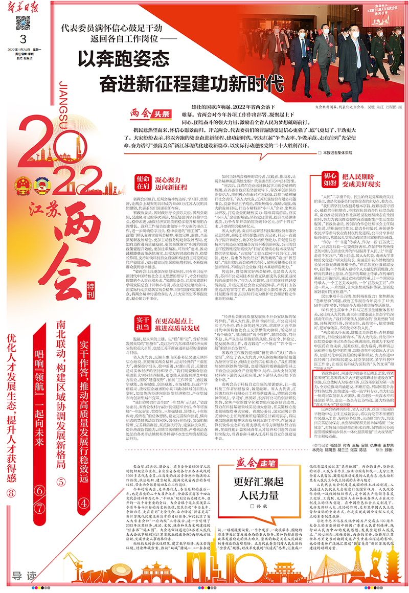 1月24日出版的《新华日报》以《以奔跑姿态 奋进新征程建功新时代》为题,报道了省政协委员、我校党委书记浦玉忠在2022年江苏两会后的代表感言。
