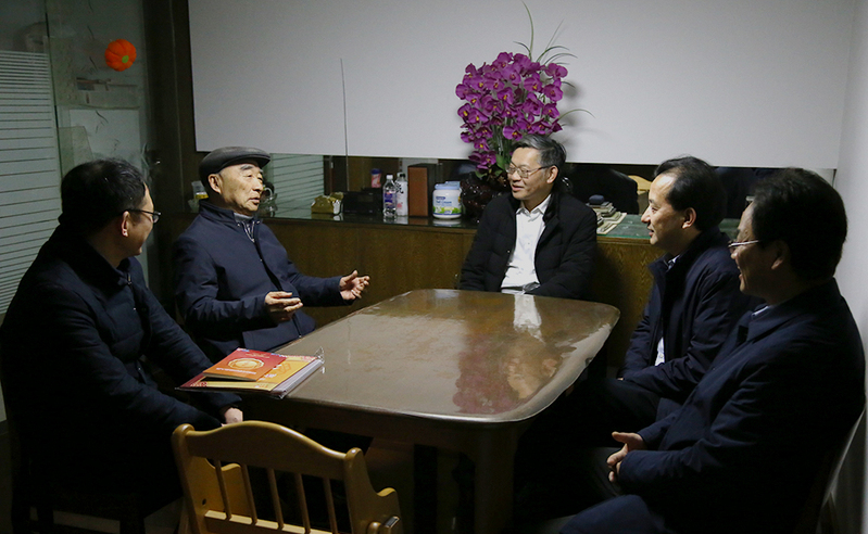 校党委书记浦玉忠走访慰问离退休老同志代表袁靖东。
