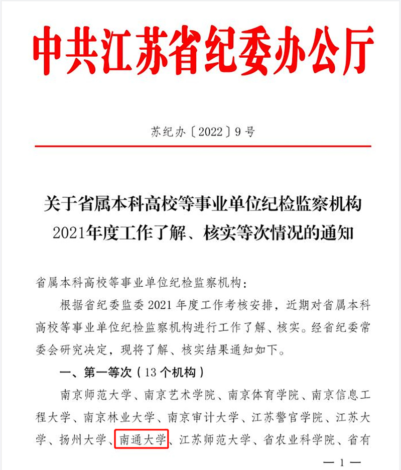 近日,省纪委监委公布了2021年全省省属本科院校、科研院所纪检监察机构工作考核结果,我校纪委、派驻监察专员办公室再次获评“第一等次”。这是自2018年省纪委监委对省属高校开展纪检监察工作考核以来,我校第四年获此佳绩。