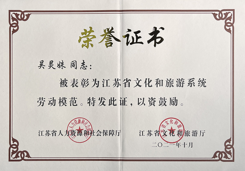 此次表彰由江苏省人社厅、江苏省文旅厅共同组织,共有79家单位获评“江苏省文化和旅游系统先进集体”称号,47名同志获评“江苏省文化和旅游系统先进工作者”称号,33名同志获评“江苏省文化和旅游系统劳动模范”称号。此次南通市共有2人被表彰为“江苏省文化和旅游系统劳动模范”。